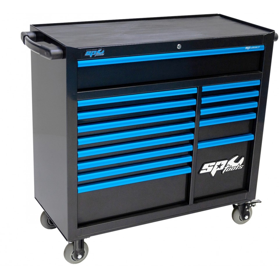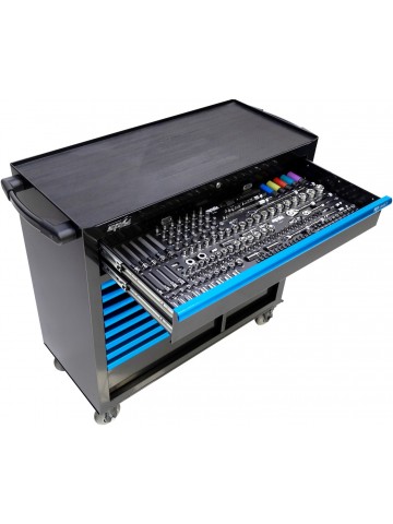424 PC VÆRKTØJSKASSE I CUSTOM SERIE RULLERKABINET 14 SKUFFER SORT/BLÅ
