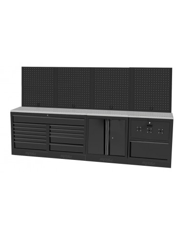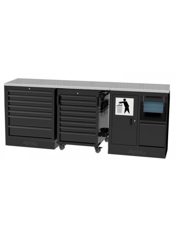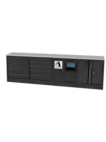 Die USA Workshop-Serie ist ein vollständig modulares Wandsystem. Die Größe, Zusammensetzung und Anordnung sind vollständig anpassbar. Dies schafft einen Arbeitsbereich, der genau an individuelle Bedürfnisse und verfügbaren Platz angepasst werden kann. Diese luxuriöse und effiziente Lösung besteht aus extra dickem Stahl, der mit einer doppelten Schicht UV-beständiger Pulverbeschichtung zum Schutz versehen ist. Dies in Kombination mit unseren "küchenartigen" Soft-Close-Schubladenauszügen macht dies zur perfekten professionellen Einrichtung für Ihre Werkstatt.