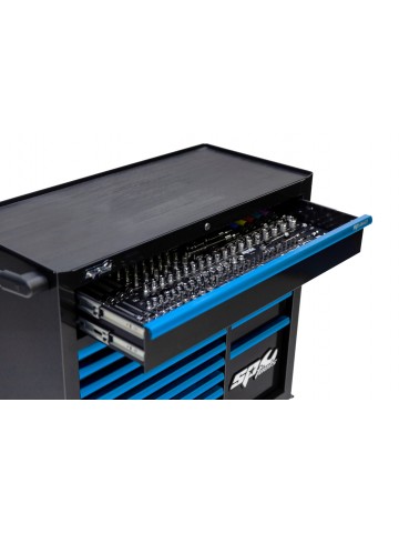 410 PC WERKZEUGKASTEN IN KUNDENSPEZIFISCHER SERIE ROLLWAGEN MIT 14 SCHUBLADEN SCHWARZ/BLAU