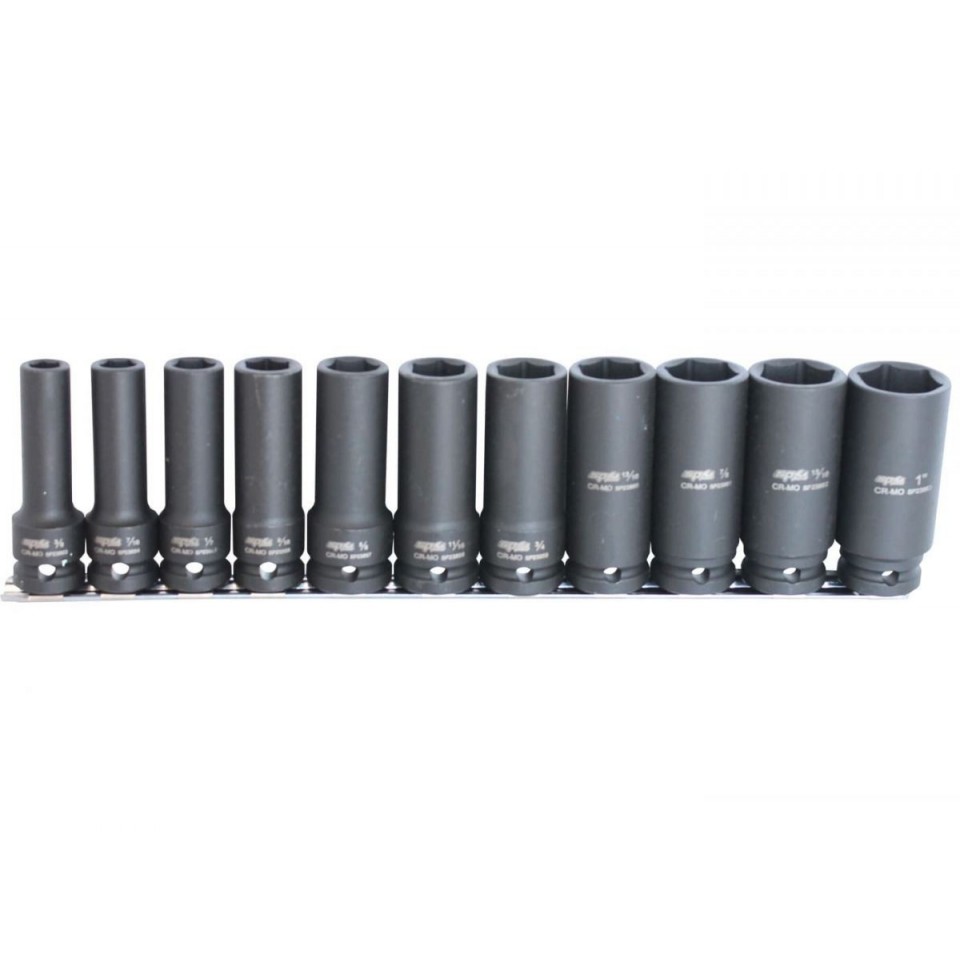 SOCKET RAIL IMPACT 1/2DR DEEP 6PT 11PC SAE