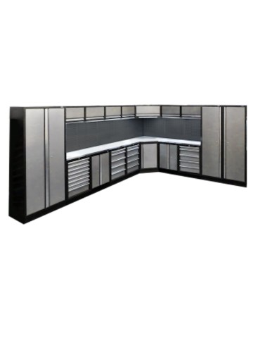 The Workshop Series is the perfect way to give your workshop the professional look you want. These systems are of very good quality. The systems can be placed against the wall or on their own. The layout can be made to suit everyone's taste and can be supplied with a luxury wooden top or a thick stainless steel top.