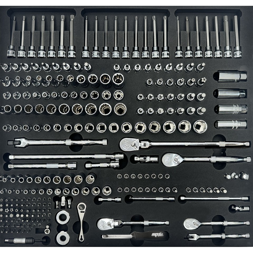 Comprehensive 1/4 & 3/8 socket set including short and long sockets & bit caps.