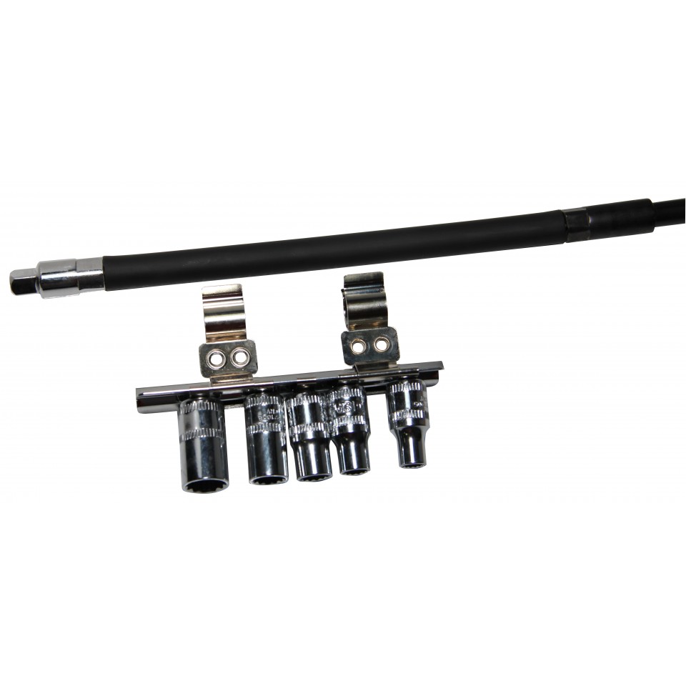 Includes clip on 5pc 12pt socket rail set: