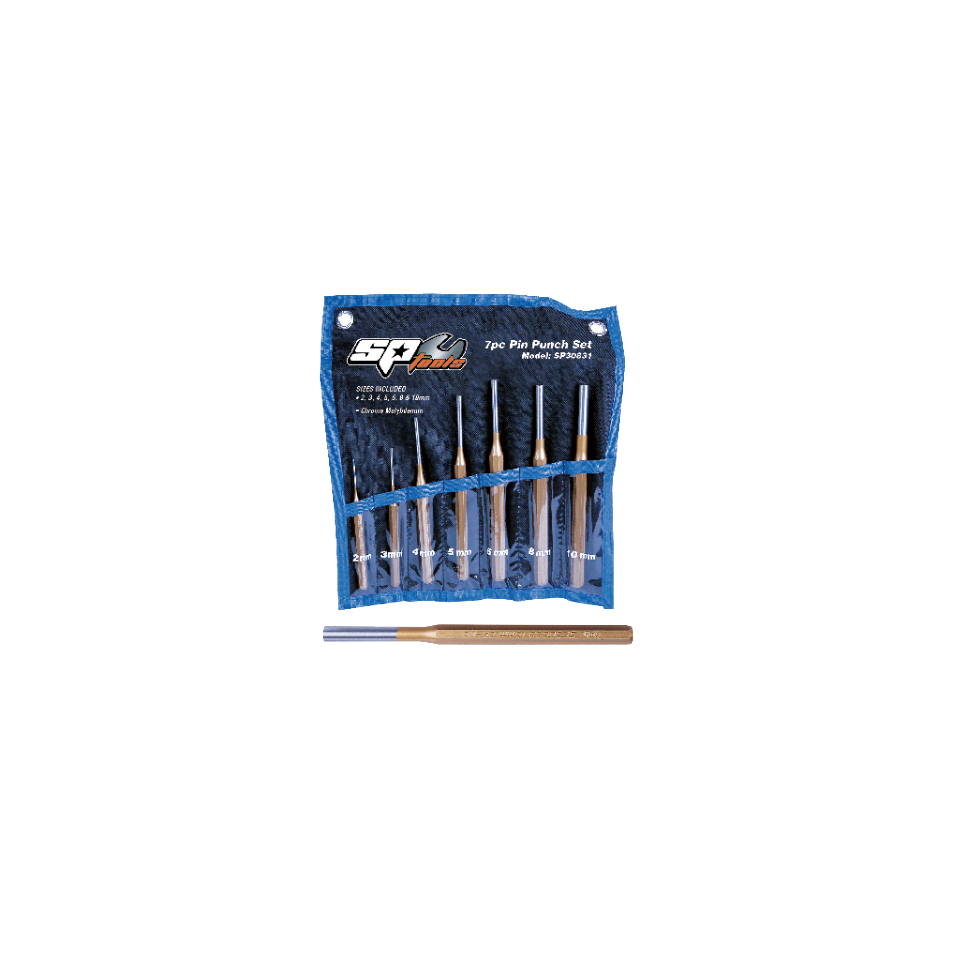 Check out this handy set of punches that includes sizes 2, 3, 4, 5, 6, 8, and 10mm. Made from strong and durable Chrome Molybdenum (Cr-Mo) alloy steel, these punches are designed to drive out pins and rivets with ease. The single piece construction and hexagonal shank provide additional durability, while the heat tempered design prevents the head from shattering or chipping during striking. Simply place the punch in position and strike firmly with a hammer or mallet for easy use.
