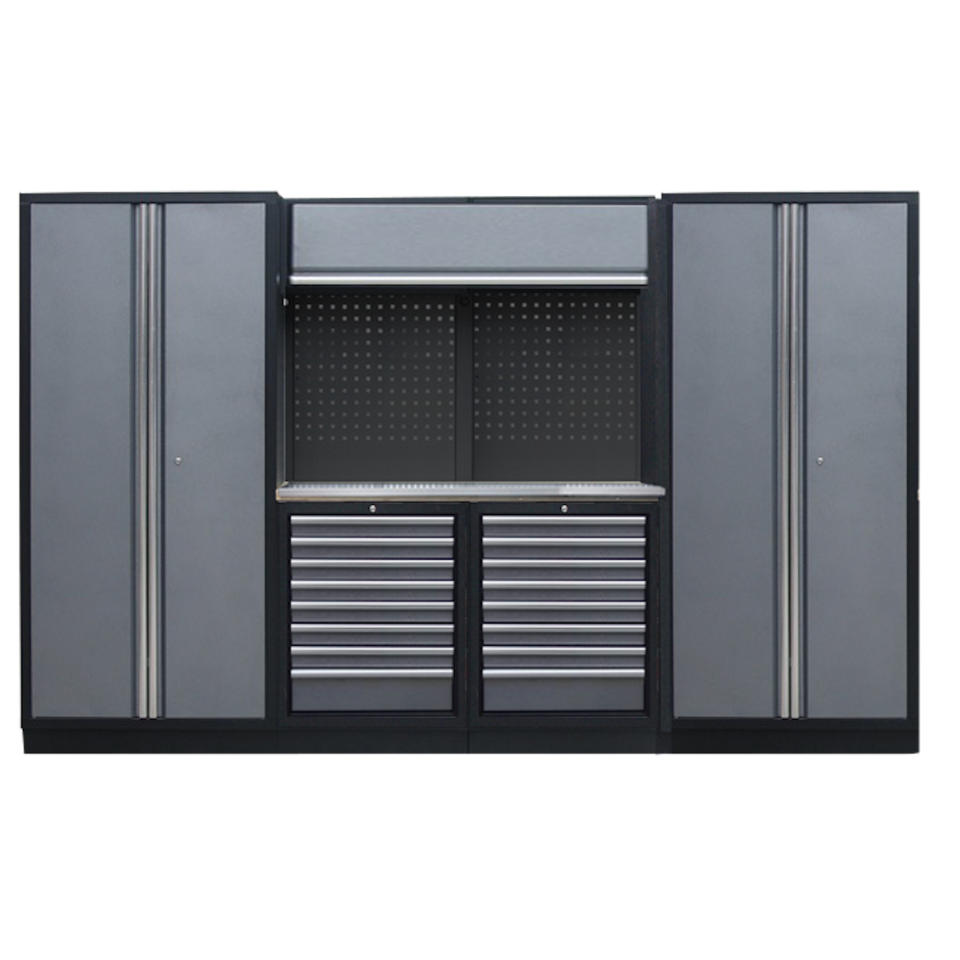 PROFESSIONAL GARAGE SERIES W/2 BACKING PANEL AND 2 TALL CABINETS
