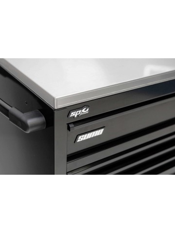 The USA Series roller cabinet from SP Tools is the ultimate workstation. With an extremely strong double-wall construction of 2 x 1.5mm steel and a load weight of 400kg+ on top of the cart, this roller cabinet is unbeatable. The drawers are capable of supporting up to 120kg each and have "One Touch Click-lok" and "Kitchen Style Softclose" what makes working with them very pleasant.