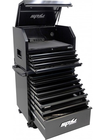 The USA Series roller cabinet from SP Tools is the ultimate workstation. With an extremely strong double-wall construction of 2 x 1.5mm steel and a load weight of 400kg+ on top of the cart, this roller cabinet is unbeatable. The drawers are capable of supporting up to 120kg each and have "One Touch Click-lok" and "Kitchen Style Softclose" what makes working with them very pleasant.