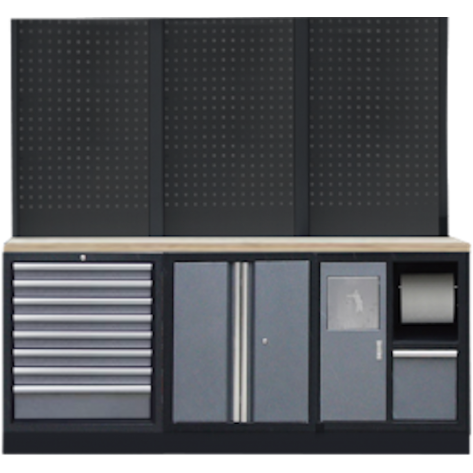 PROFESSIONAL GARAGE WALL SYSTEM 3 BACK PANELS WITH WOODEN WORKTOP
