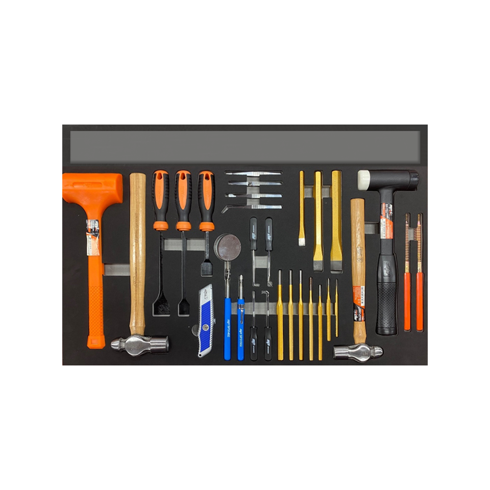 Très large gamme d'outils : marteaux, poinçons, ciseaux, grattoirs, ensemble de couteaux, fusibles à fil.
