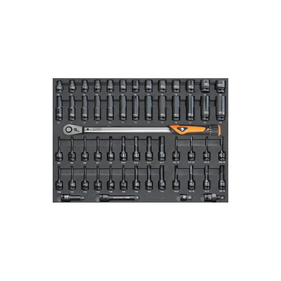 ENSEMBLE DE DOUILLES À CHOC/CLÉ DYNAMOMÉTRIQUE AVEC INSERT EN MOUSSE EVA 1/2 POUCES, 57 PIÈCES