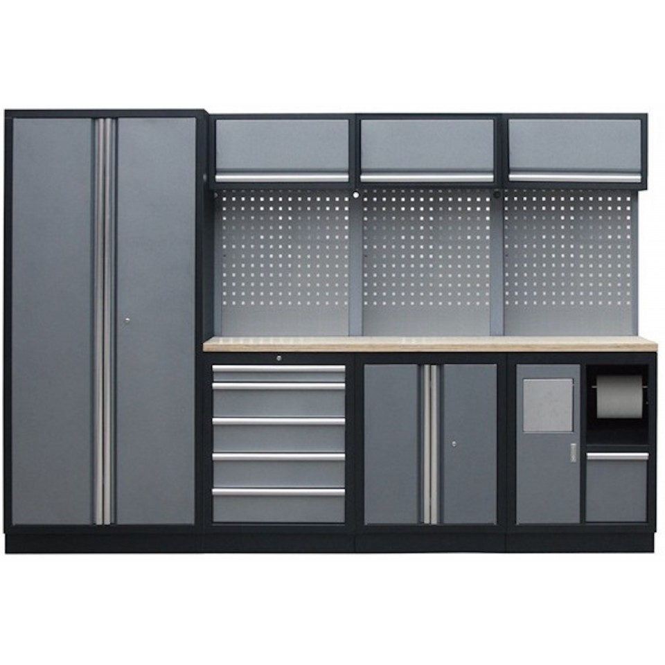 La série d'ateliers est le moyen idéal de donner à votre atelier l'aspect professionnel que vous souhaitez. Ces systèmes sont de très bonne qualité. Les systèmes peuvent être placés contre le mur ou seuls. La disposition peut être assemblée selon vos goûts et peut être fournie avec un dessus en bois de luxe ou un dessus en acier inoxydable épais.