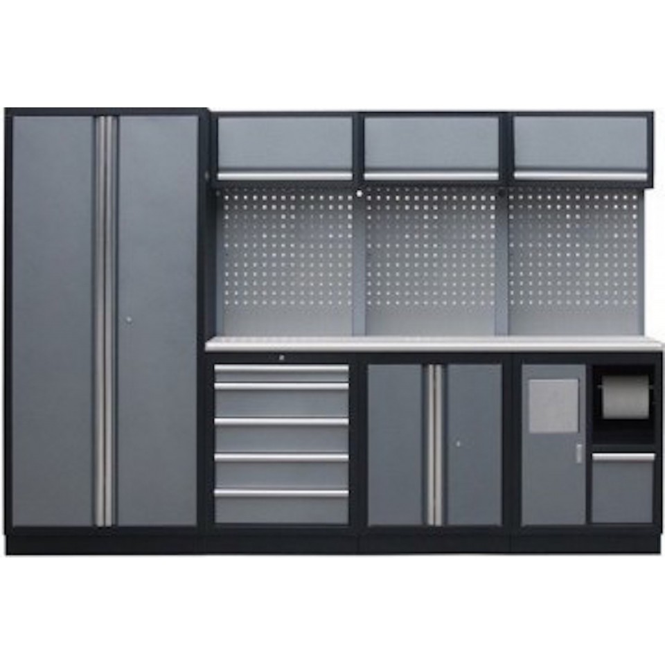 La série d'ateliers est le moyen parfait de donner à votre atelier l'aspect professionnel que vous souhaitez. Ces systèmes sont de très bonne qualité. Les systèmes peuvent être placés contre le mur ou seuls. La disposition peut être assemblée selon vos goûts et peut être fournie avec un dessus en bois de luxe ou un dessus en acier inoxydable épais.