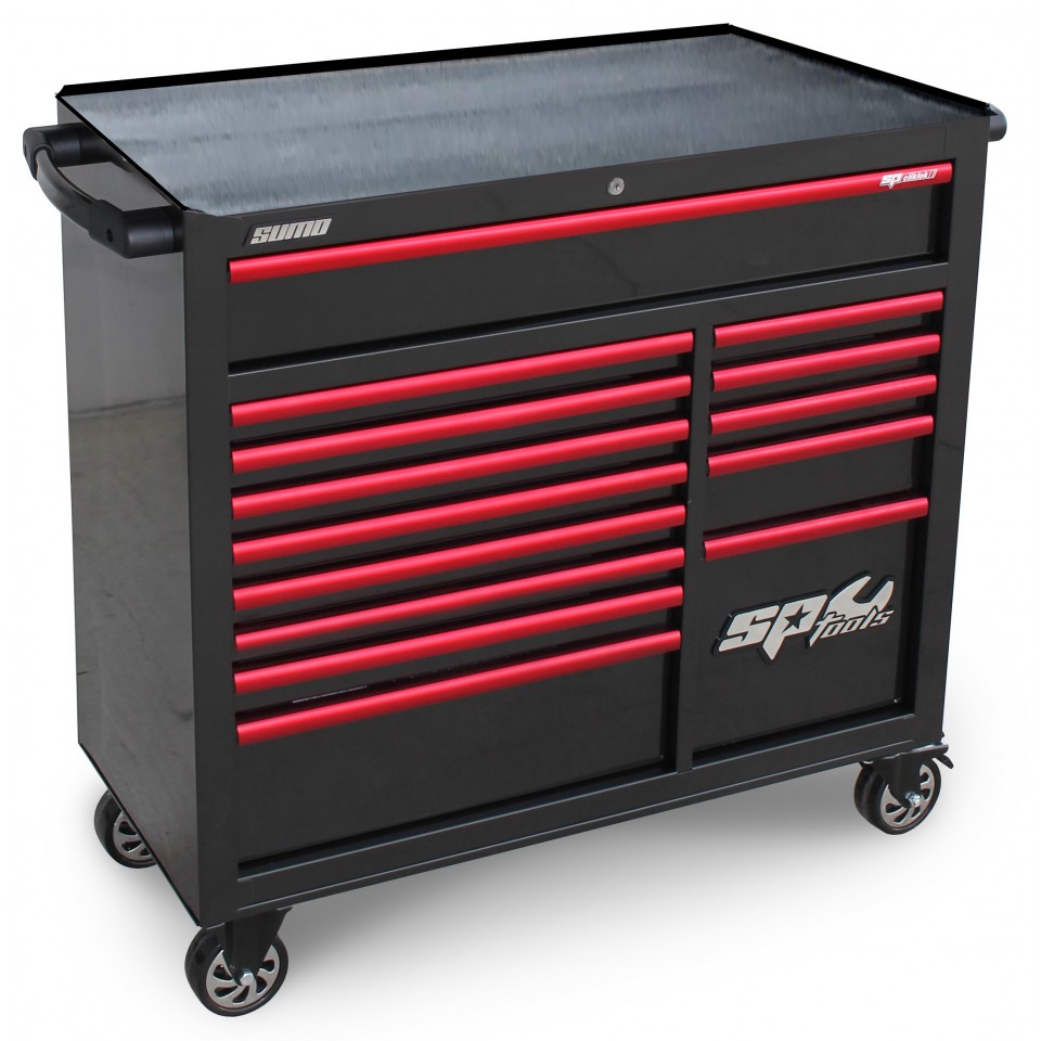 La série SP SUMO est la réponse aux armoires à roulettes de style américain. Ce chariot robuste est entièrement construit en acier à double paroi. Cette série est connue pour son design rectangulaire populaire associé à sa qualité robuste. Ce chariot peut également être personnalisé aux couleurs de votre atelier pour former un ensemble parfait dans votre atelier.
