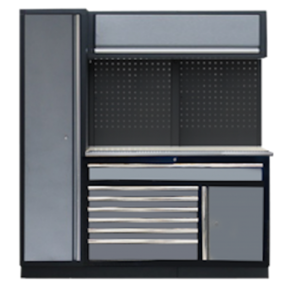 SYSTÈME D'ATELIER 11PC AVEC PLAN DE TRAVAIL EN ACIER INOXYDABLE