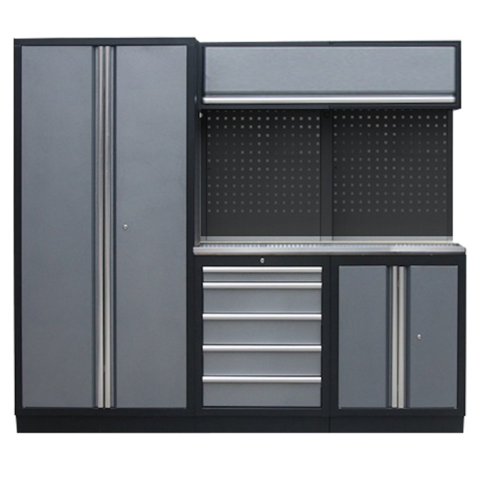 SÉRIE DE GARAGE PROFESSIONNELLE AVEC 2 PANNEAUX ARRIÈRE ET ARMOIRE HAUTE