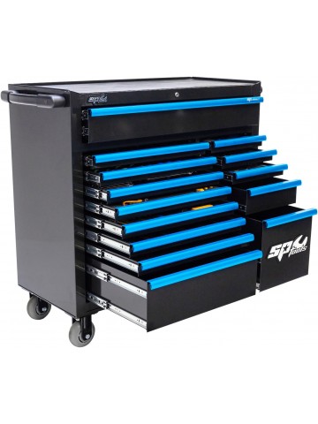 411 STUKS GEREEDSCHAPSKIST IN TECH SERIES ROLLERCAB DIAMOND ZWART/BLAUW 13 LADEN