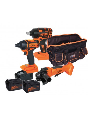 ACCUKIT 18V COMBIKIT 1/4" SLAGSCHROEVENDRAAIER, SLAGMOERSLEUTEL EN HAAKSE SLIJPER