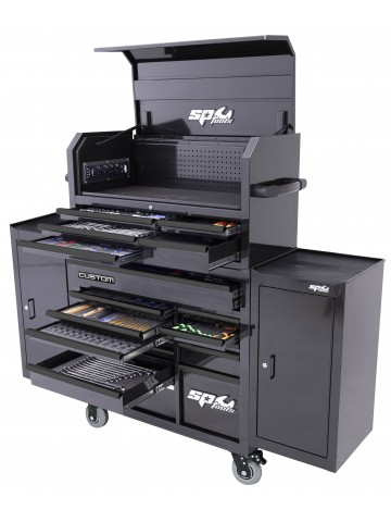 410 STUKS GEREEDSCHAPSKOFFER IN ROLCABINE CUSTOM SERIES 14 LADEN ZWART + TOPBOX