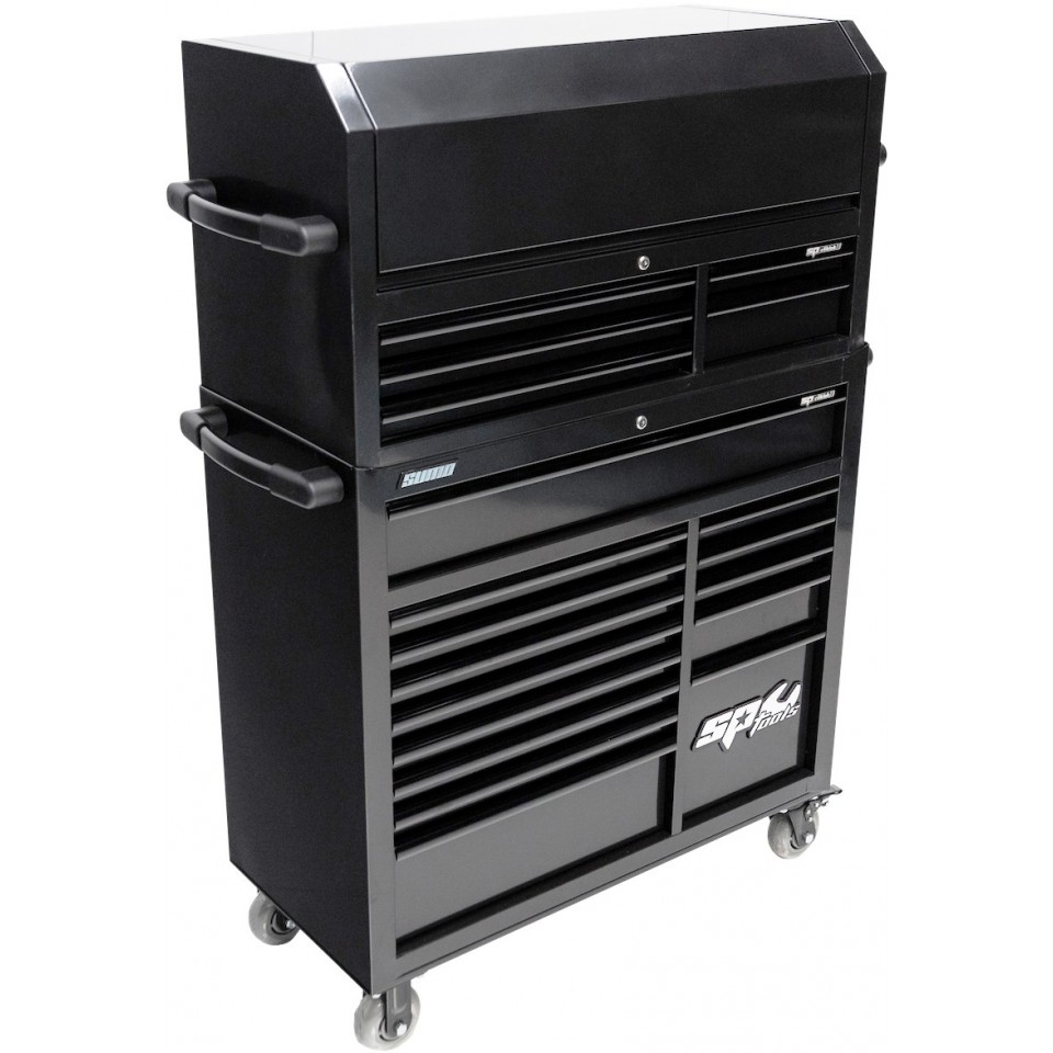 410 STUKS GEREEDSCHAPSKOFFER IN ROLCABINE CUSTOM SERIES 14 LADEN ZWART + TOPBOX