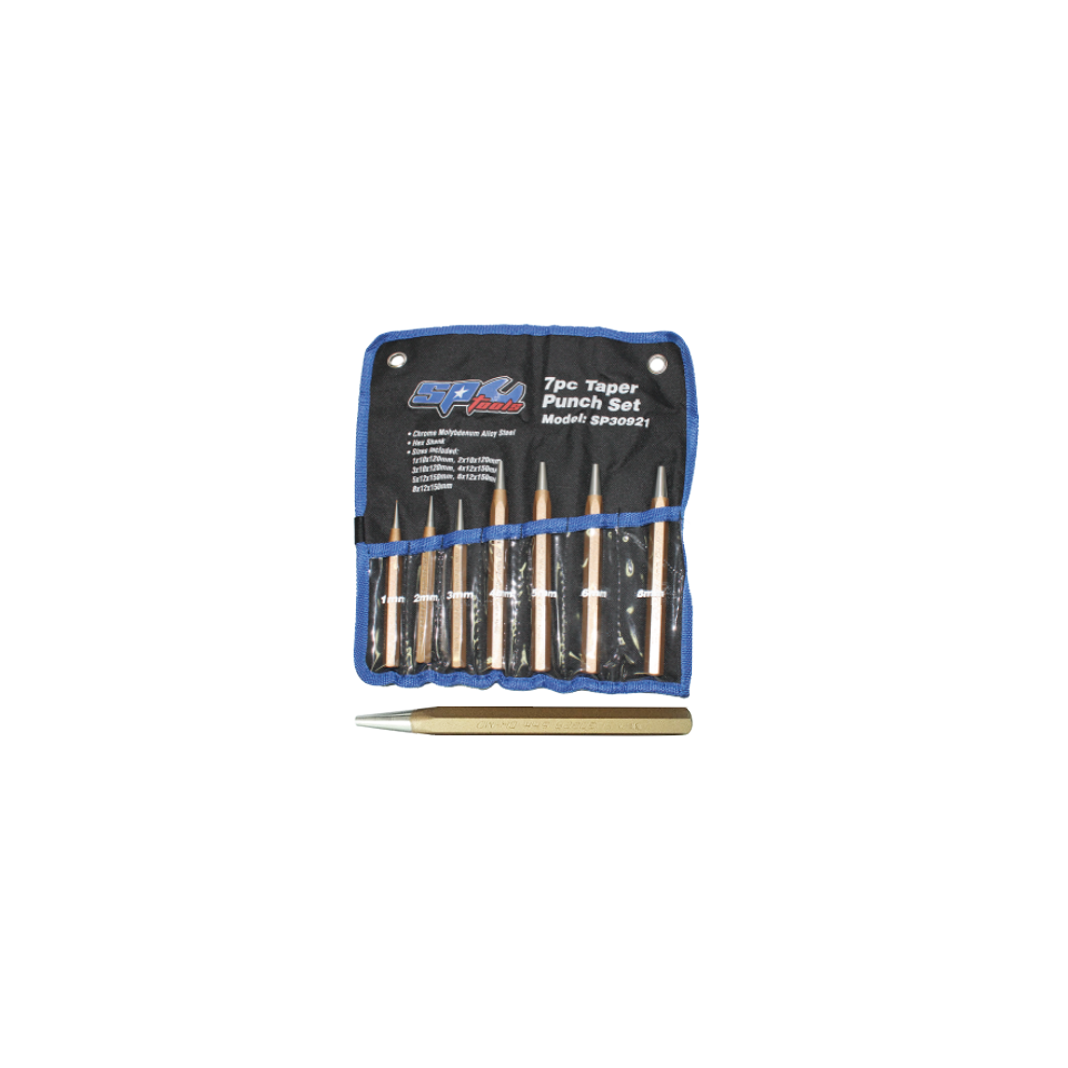 Bekijk deze veelzijdige set met 1, 2, 3, 4, 5, 6 & 8mm ponsen. Deze ponsen zijn ontworpen om klinknagels en pennen uit te slaan, bevroren moeren los te maken en lagers te verwijderen. Gemaakt van chroom molybdeen (Cr-Mo) gelegeerd staal, zijn ze sterk en duurzaam met een constructie uit één stuk. De zeshoekige schacht voegt extra duurzaamheid toe en ze zijn thermisch gehard om versplintering of afbrokkelen tijdens het slaan te voorkomen. Gemakkelijk te gebruiken: plaats de pons gewoon op zijn plaats en sla er stevig op met een hamer of moker.