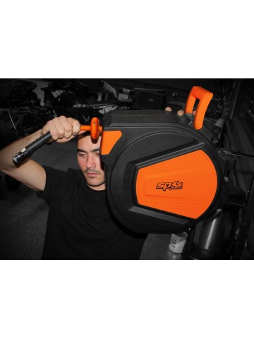 Geniet van de vrijheid om je gemakkelijk door je werkplaats te bewegen dankzij de grote 15 m hoogwaardige luchtslang op deze gemonteerde haspel.