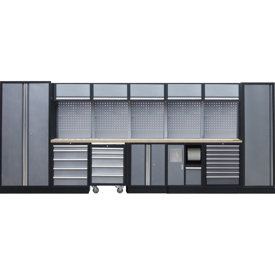 De werkplaatsuitrusting SP Workshop Series is een solide oplossing voor uw werkplaatsopslag. Deze eenvoudige maar efficiënte oplossing is gemaakt van extra dik staal, afgewerkt met een dubbele laag poedercoating voor bescherming. In combinatie met onze softclose ladegeleiders (kogelgelagerd) is dit de perfecte professionele oplossing voor je werkplaats.