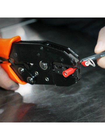 • 220 mm (8,5") handratelkrimper voor voorgeïsoleerde kabelschoenen