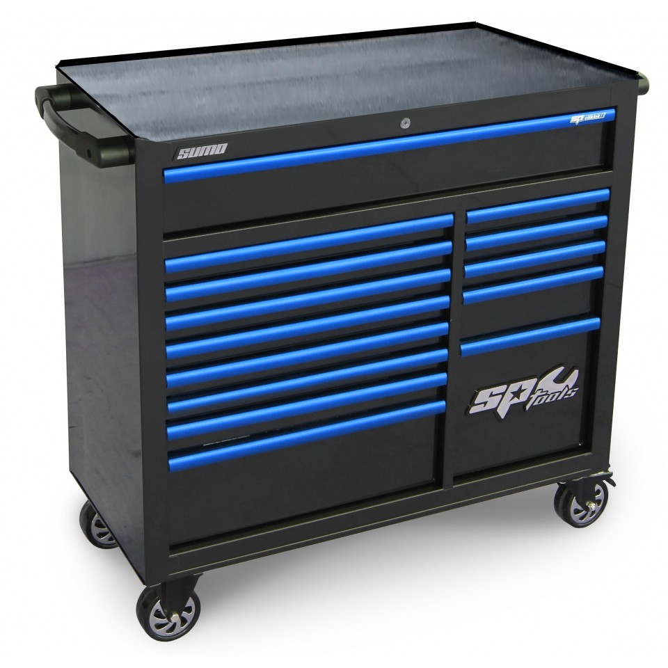 De SP SUMO serie is een zeer solide kar die volledig gelast is met een dubbelwandige constructie. Dit alles is afgewerkt met een dubbele laag poedercoating om een lange levensduur te garanderen. Dit alles in combinatie met de kogelgelagerde ladegeleiders met softclose maakt dit de ideale kar met een uitstekende levensduur. Dit model heeft ook een centrale vergrendeling met een unieke sleutel aan de voorkant van de trolley/koffer en clicklok ladevergrendeling op alle laden.