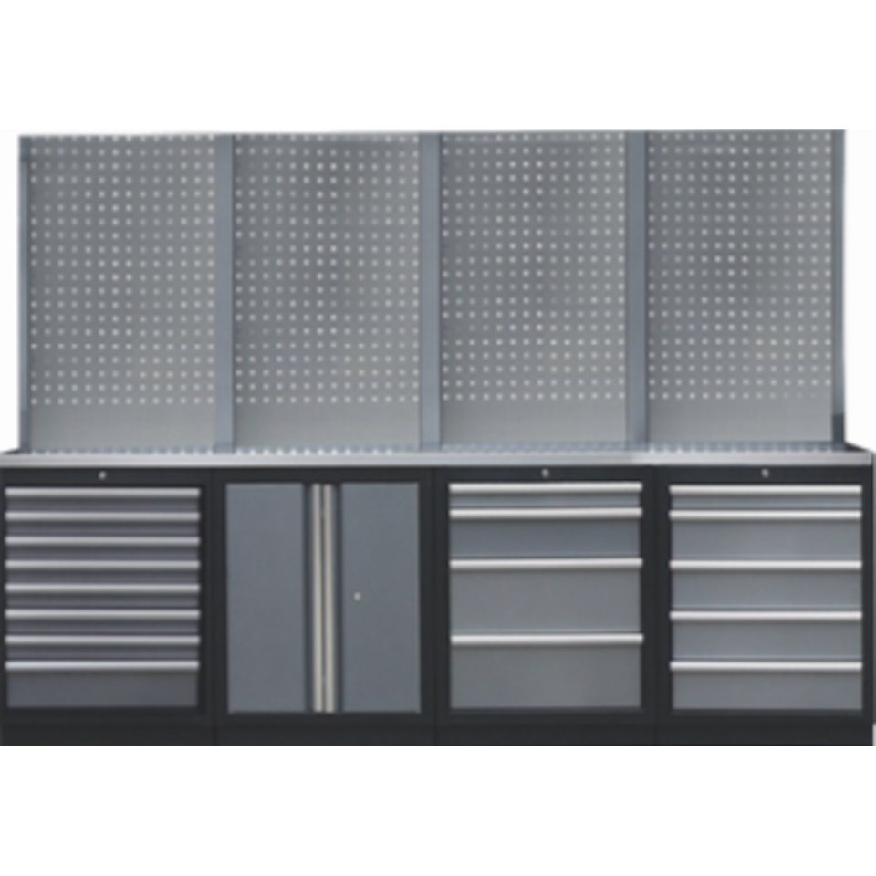 PROFESSIONEEL GARAGEMUURSYSTEEM 4 ACHTERPANELEN MET ROESTVRIJSTALEN WERKBLAD