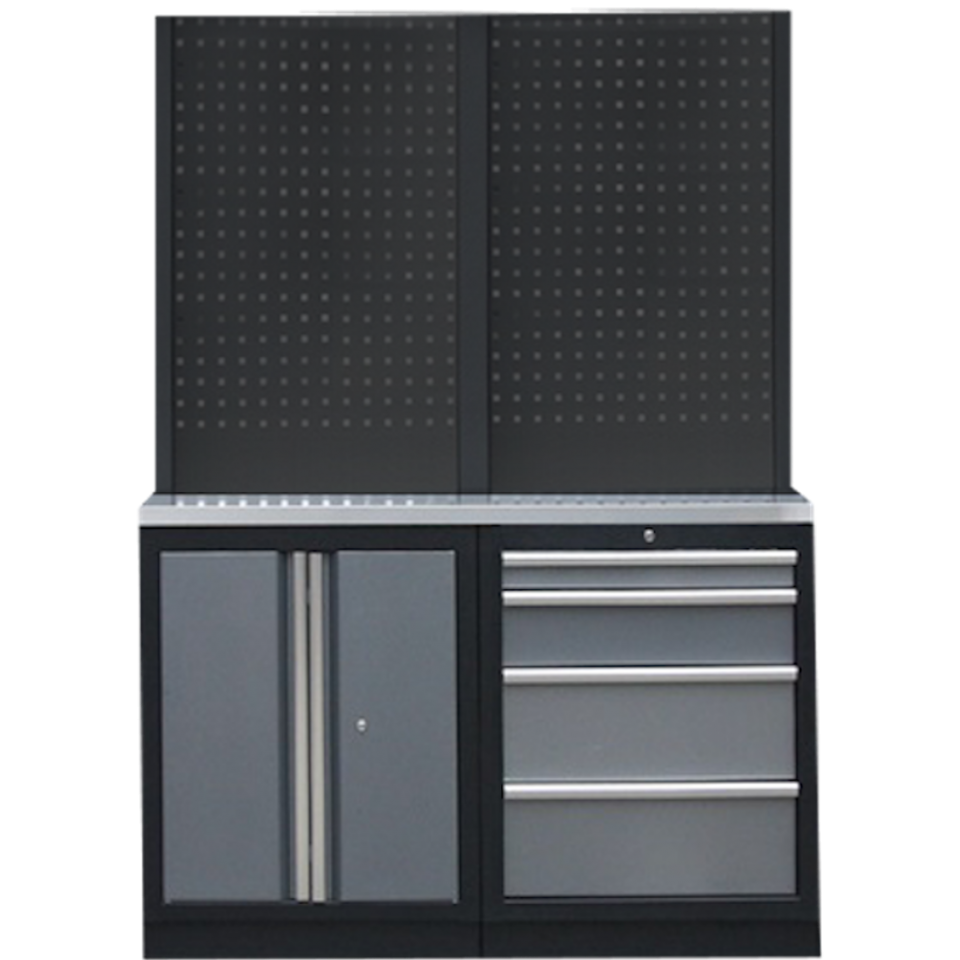 PROFESSIONEEL GARAGEMUURSYSTEEM 2 ACHTERPANELEN MET ROESTVRIJSTALEN WERKBLAD